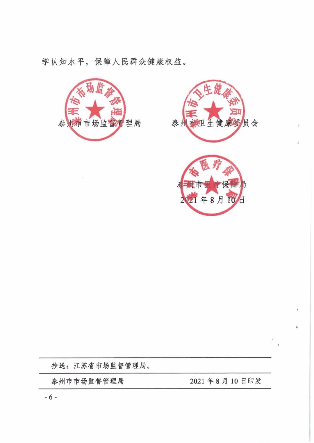 為貫徹落實《江蘇省特殊醫(yī)學用途配方食品經(jīng)營使用管理辦法(試行)》精神,進一步規(guī)范醫(yī)療機構(gòu)特殊醫(yī)學用途配方食品(以下簡稱“特醫(yī)食品”)經(jīng)營使用管理。 江蘇省泰州市市場監(jiān)管管理局、泰州市衛(wèi)生健康委員會、泰州市醫(yī)療保障局聯(lián)合發(fā)布《關(guān)于進一步規(guī)范醫(yī)療機構(gòu)經(jīng)營特殊醫(yī)學用途配方食品管理的通知》。