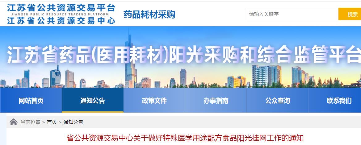 【重磅】江蘇省啟動特醫(yī)食品陽光掛網(wǎng)采購工作