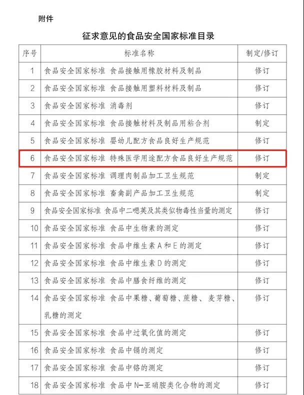 關(guān)于征求《食品安全國家標準 特殊醫(yī)學用途配方食品良好生產(chǎn)規(guī)范》食品安全國家標準(征求意見稿)意見的函