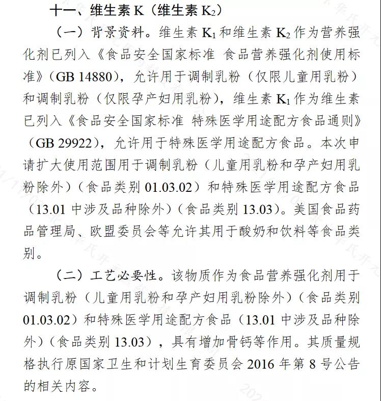 征求意見|食品添加劑維生素K2用于特殊醫(yī)學(xué)用途配方食品公開征求意見