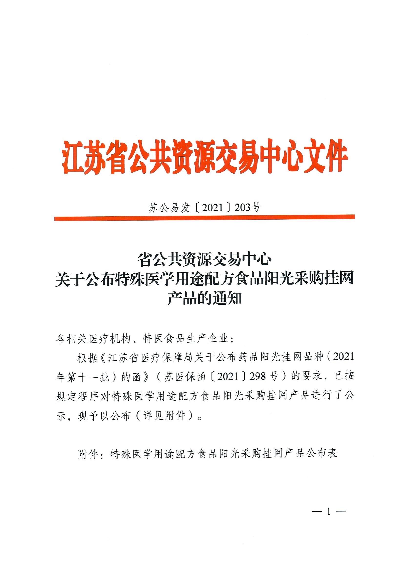 正式公布!江蘇省公共資源交易中心關(guān)于公布特殊醫(yī)學(xué)用途配方食品陽光采購掛網(wǎng)產(chǎn)品的通知