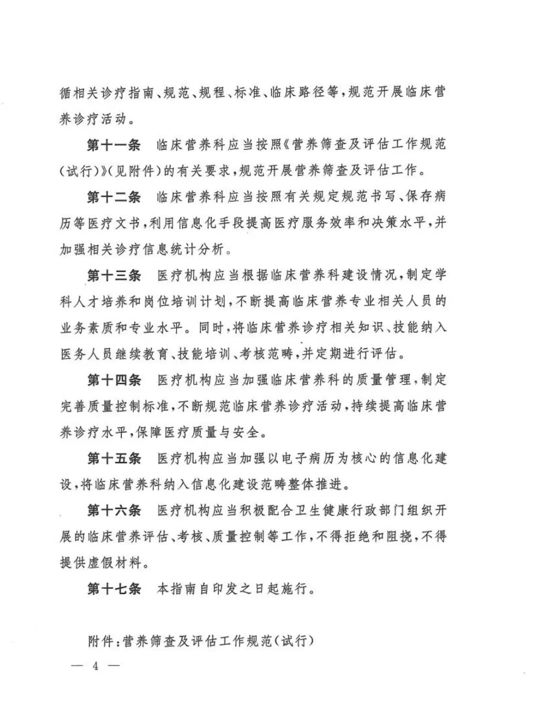 4 ?醫(yī)療機(jī)構(gòu)應(yīng)當(dāng)認(rèn)真遵守有關(guān)法律法規(guī)、規(guī)章制度,遵循相關(guān)診療指南、規(guī)范、規(guī)程、標(biāo)準(zhǔn)、臨床路徑等,規(guī)范開展臨床營(yíng)養(yǎng)診療活動(dòng)。