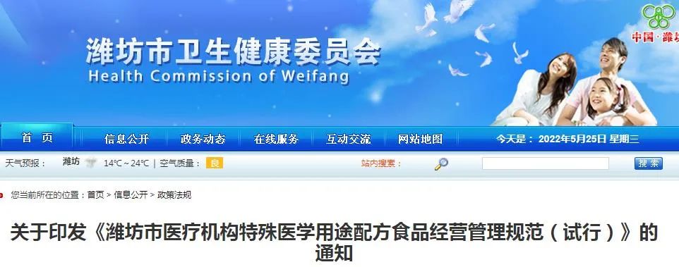 行業(yè)動(dòng)態(tài)| 濰坊市醫(yī)療機(jī)構(gòu)特殊醫(yī)學(xué)用途配方食品經(jīng)營管理規(guī)范(試行)
