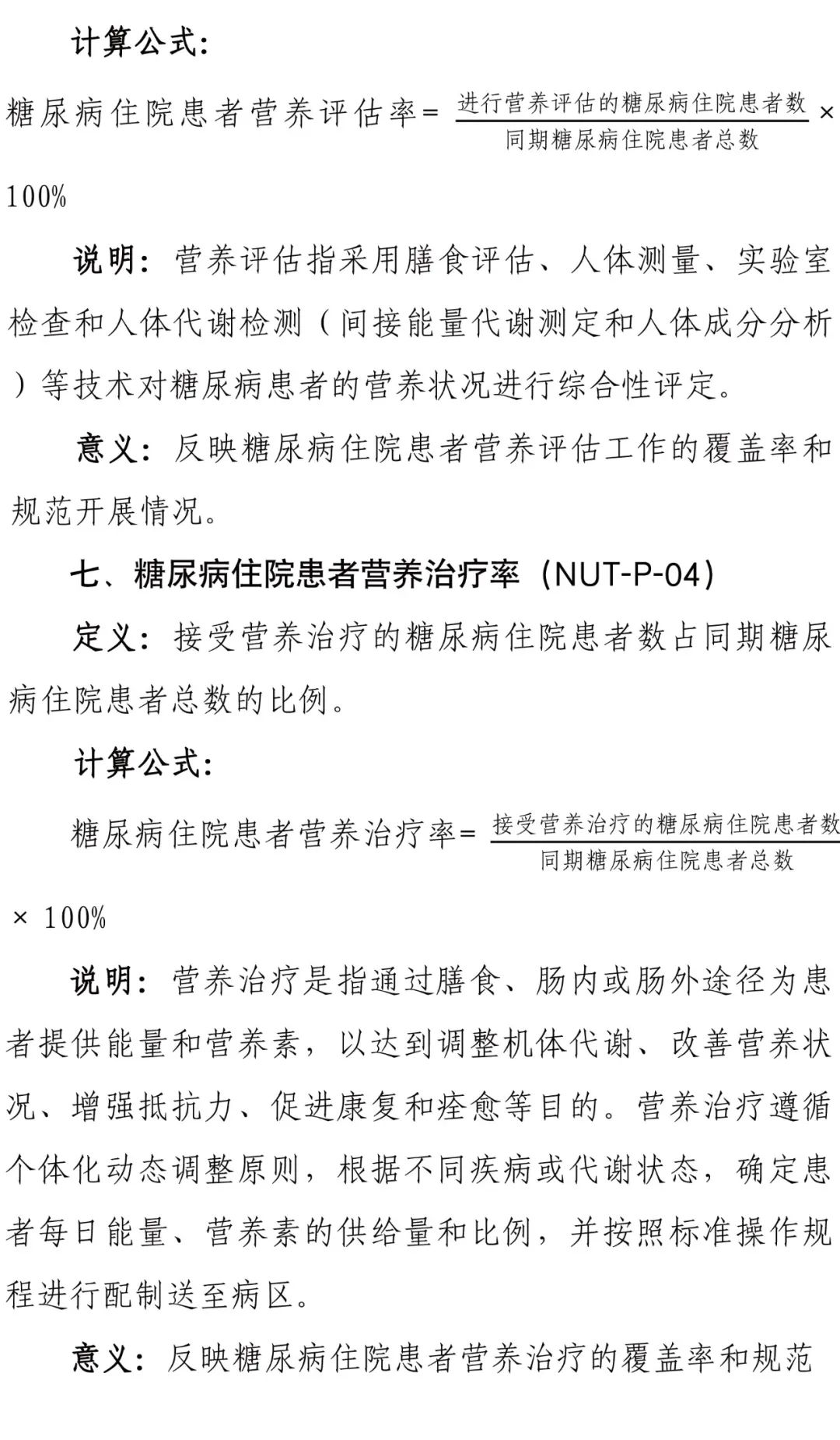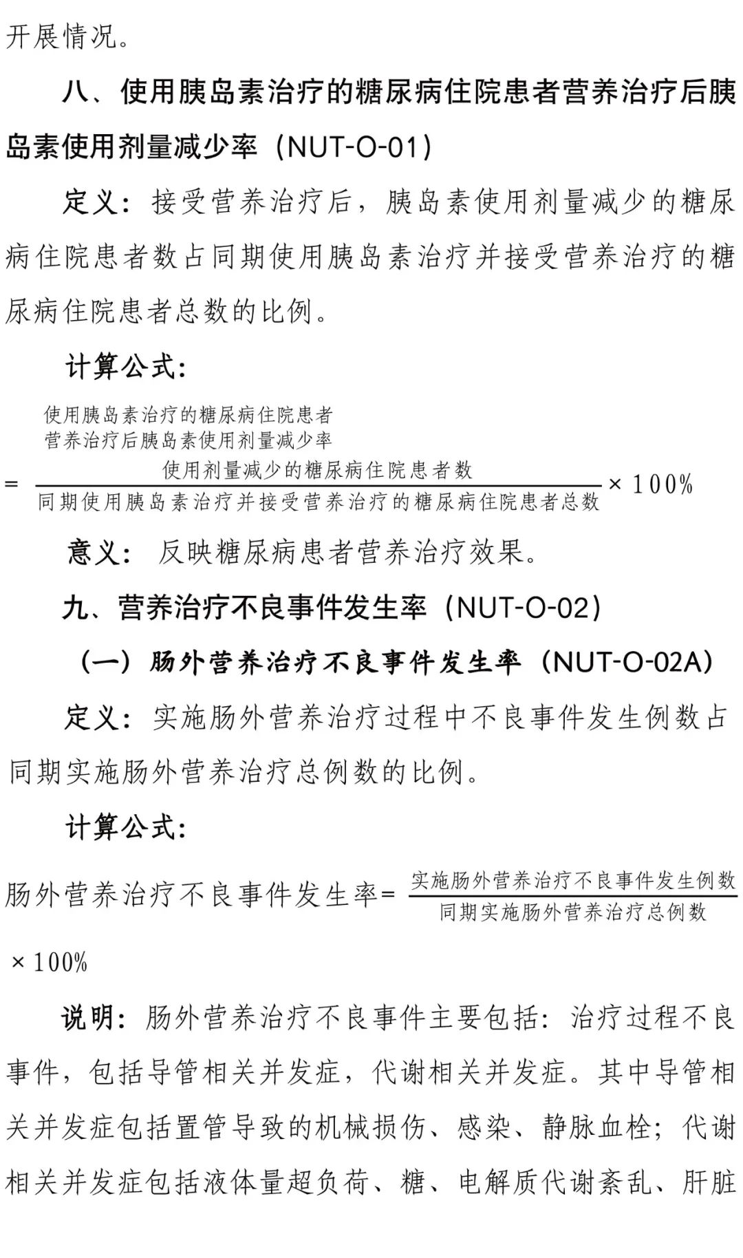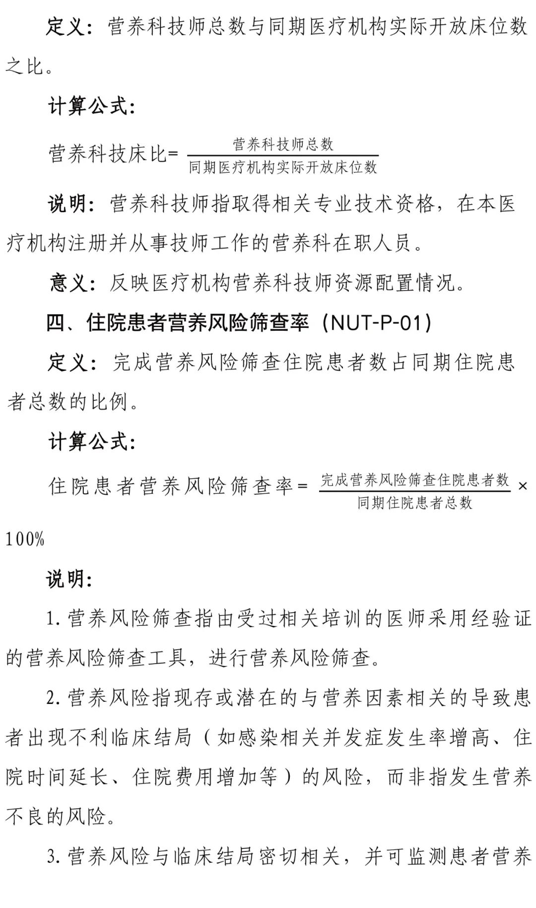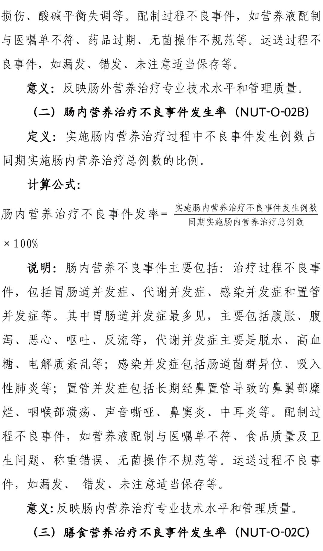 為進一步加強醫(yī)療質(zhì)量管理,規(guī)范臨床診療行為,促進醫(yī)療服務的標準化、同質(zhì)化,國家衛(wèi)健委組織制定了臨床營養(yǎng)專業(yè)醫(yī)療質(zhì)量控制指標,要求各級各類醫(yī)療機構(gòu)要充分利用相關醫(yī)療質(zhì)量控制指標開展質(zhì)量管理工作,不斷提升醫(yī)療質(zhì)量管理的科學化和精細化水平。