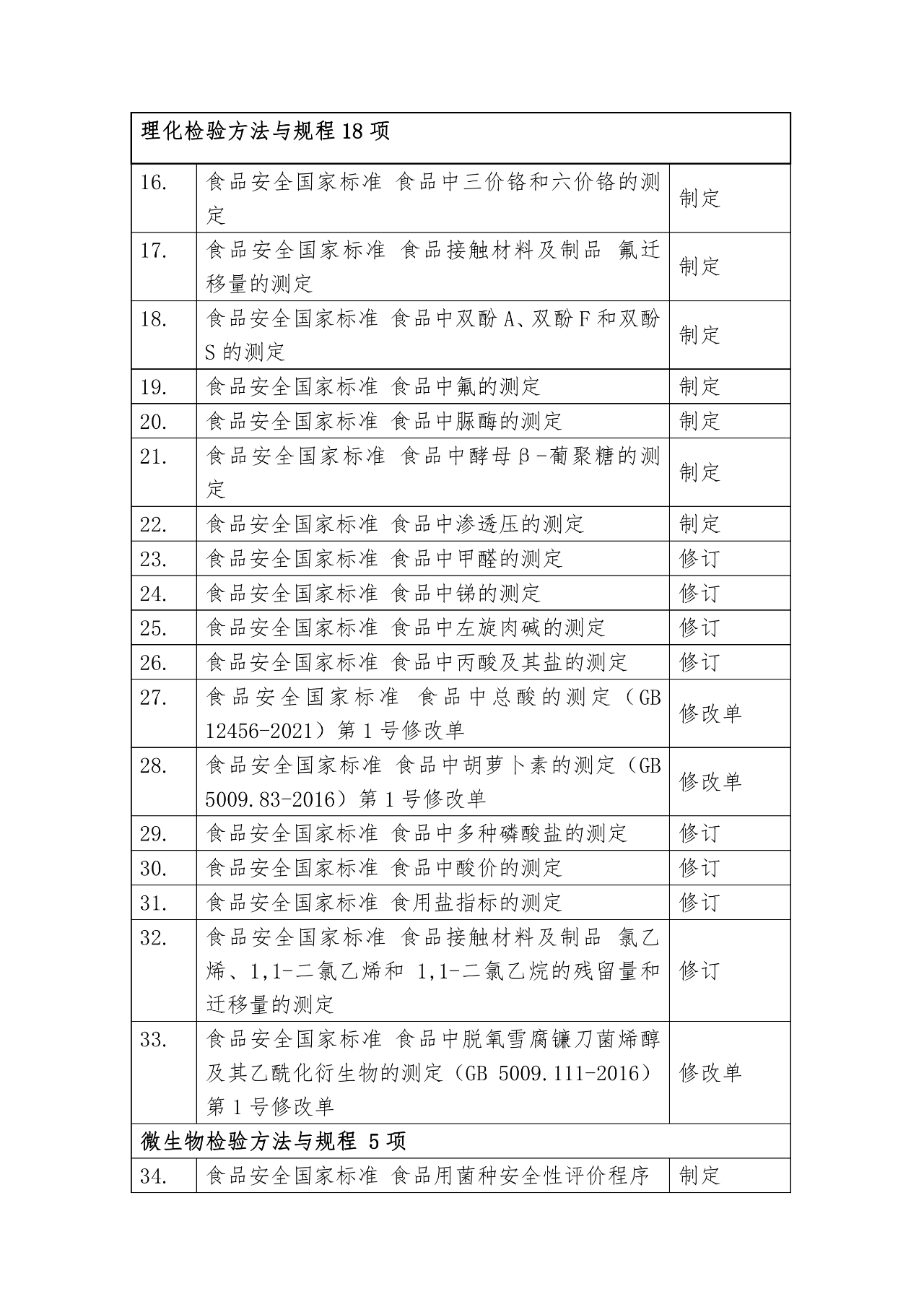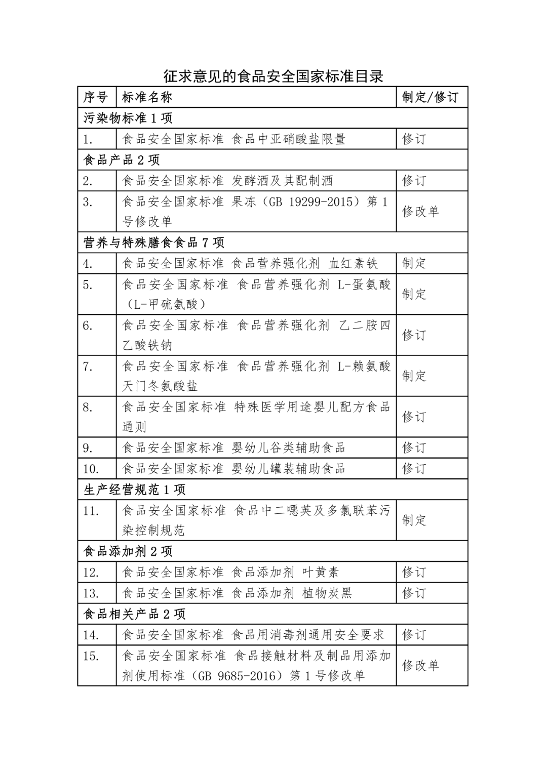 附件:征求意見的食品安全國家標(biāo)準(zhǔn)目錄