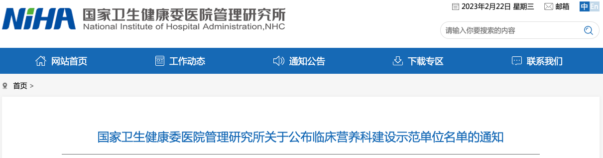 國家衛(wèi)生健康委醫(yī)院管理研究所公布30家臨床營養(yǎng)科建設示范單位名單