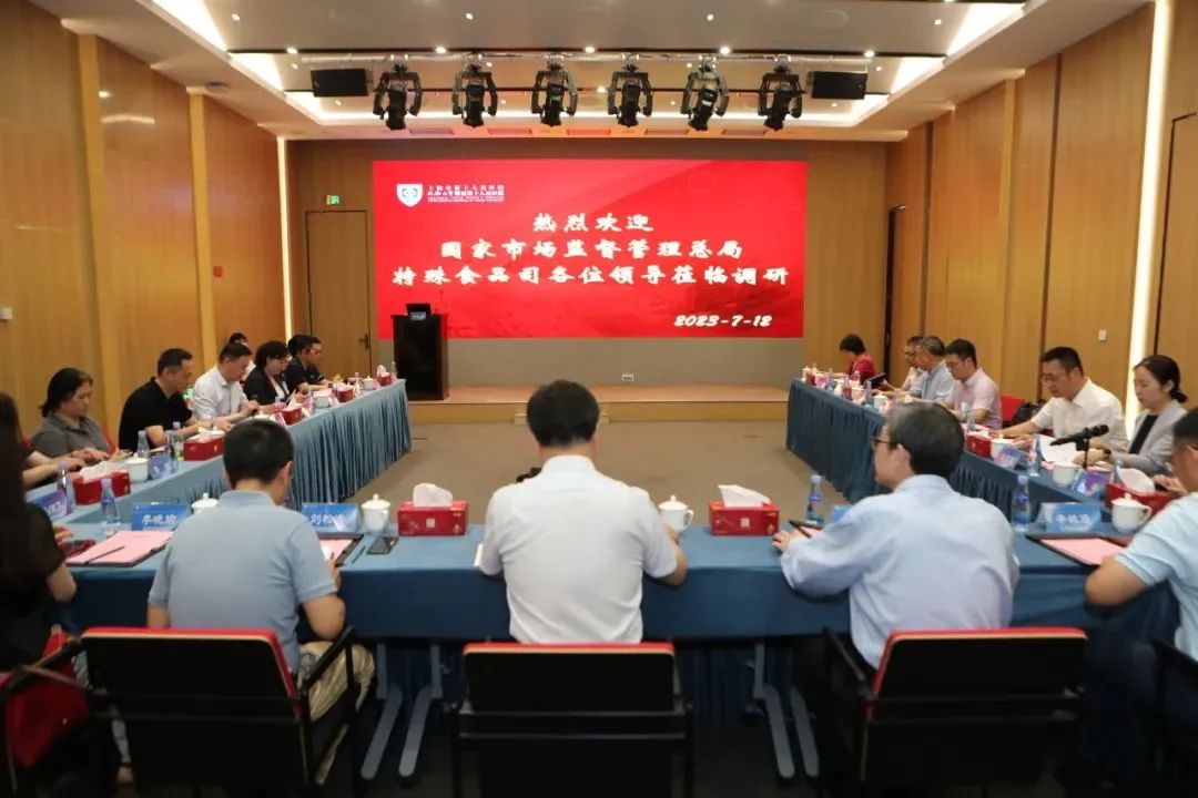 7月12日上午,國家市場監(jiān)督管理總局特殊食品司司長周石平、副司長劉松濤、嬰配食品注冊處處長李曉瑜、一級調(diào)研員辛敏通一行赴上海市第十人民醫(yī)院臨床醫(yī)學(xué)科創(chuàng)園調(diào)研特醫(yī)食品臨床應(yīng)用工作。上海市市場監(jiān)督管理局副局長許瑾、特食處處長王琳、三級調(diào)研員宋慶訓(xùn),上海市衛(wèi)生健康委食品安全標準與監(jiān)測評估處處長徐奕麗、醫(yī)政醫(yī)管處王利江,上海市醫(yī)保局醫(yī)藥服務(wù)管理處陳天池等相關(guān)同志參加調(diào)研。