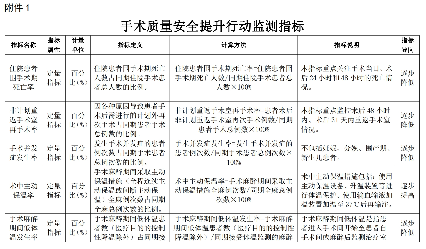 附件:1.手術(shù)質(zhì)量安全提升行動監(jiān)測指標(biāo)