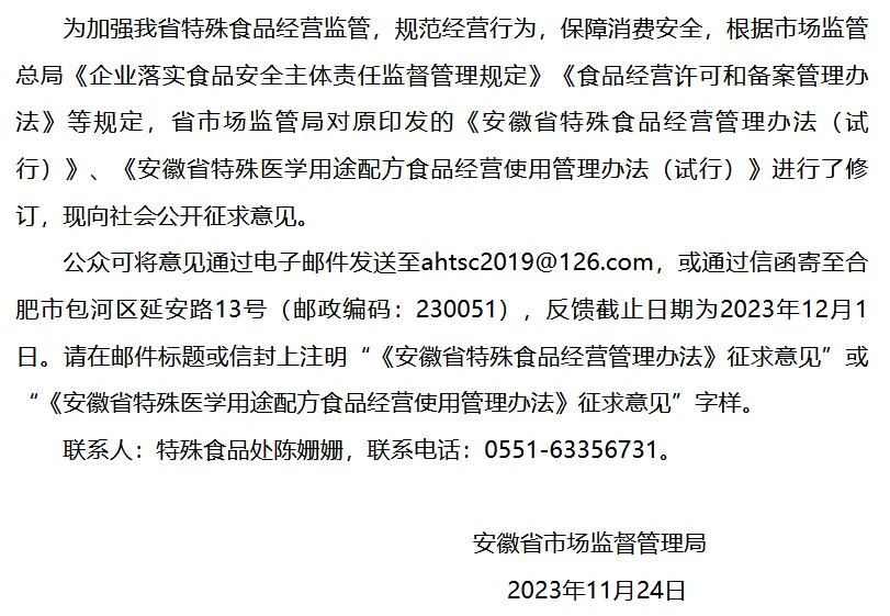 征求意見| 安徽省特殊食品、特醫(yī)食品經(jīng)營(yíng)使用管理辦法