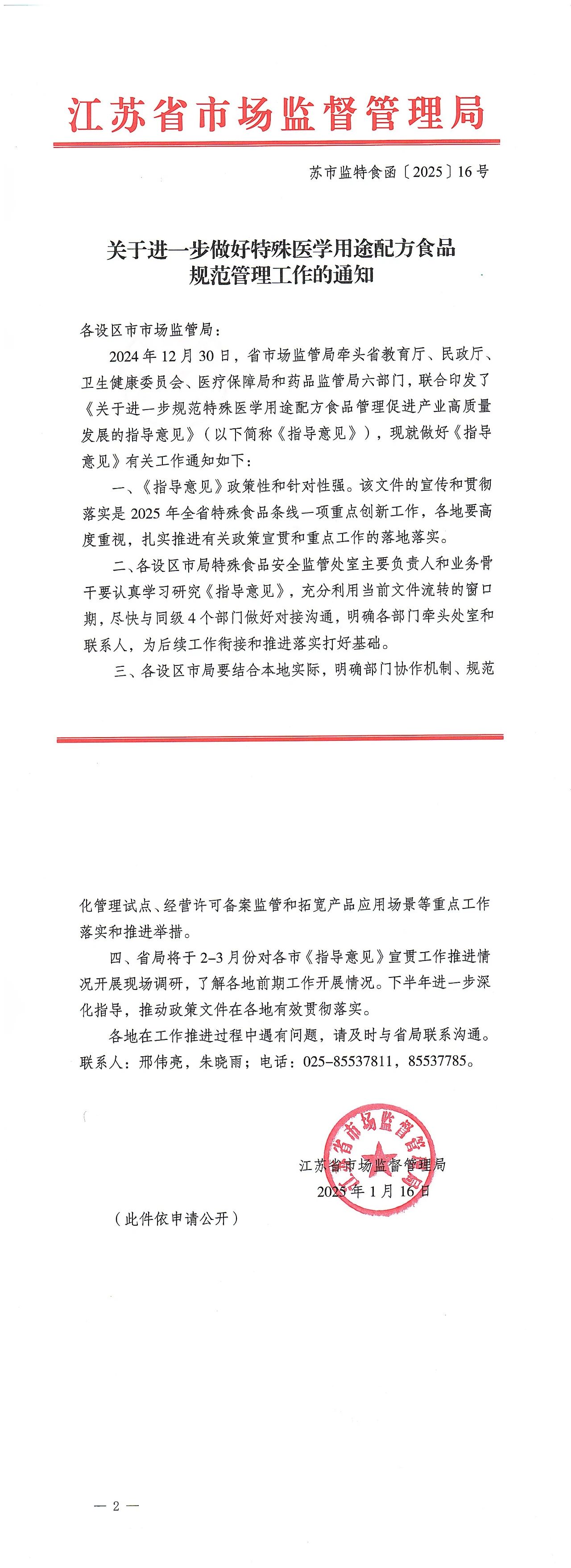 江蘇省發(fā)布關(guān)于進(jìn)一步做好特殊醫(yī)學(xué)用途配方食品規(guī)范管理工作的通知